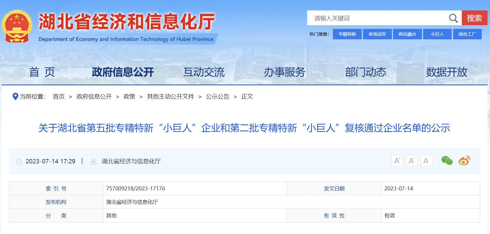 2023年7月14日,國家工信部發(fā)布了第五批專精特新“小巨人”企業(yè)名單,武漢鼎業(yè)安環(huán)科技集團有限公司(原武漢鼎業(yè)環(huán)保工程技術(shù)有限公司)憑借在安全環(huán)保領(lǐng)域的綜合實力和科技創(chuàng)新能力,榮獲國家級專精特新“小巨人”企業(yè)!