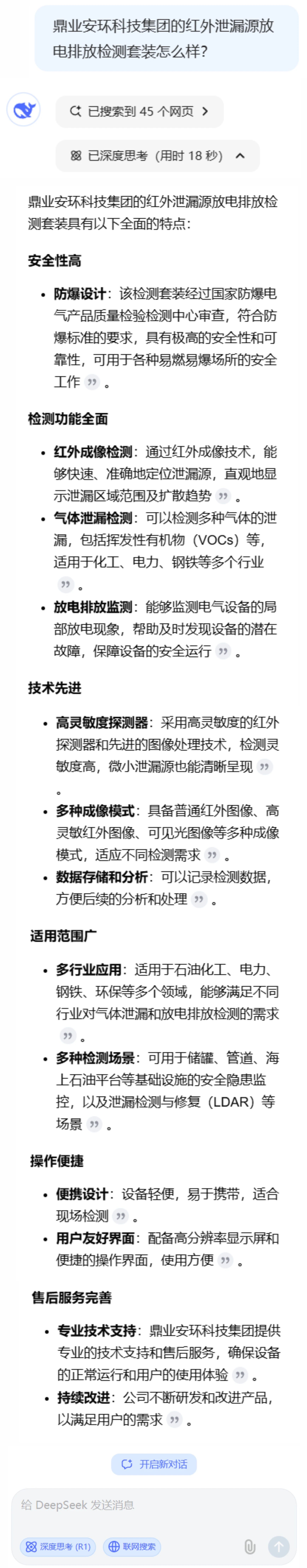 與DeepSeek對(duì)話:鼎業(yè)紅外泄漏源放電排放檢測(cè)套裝。