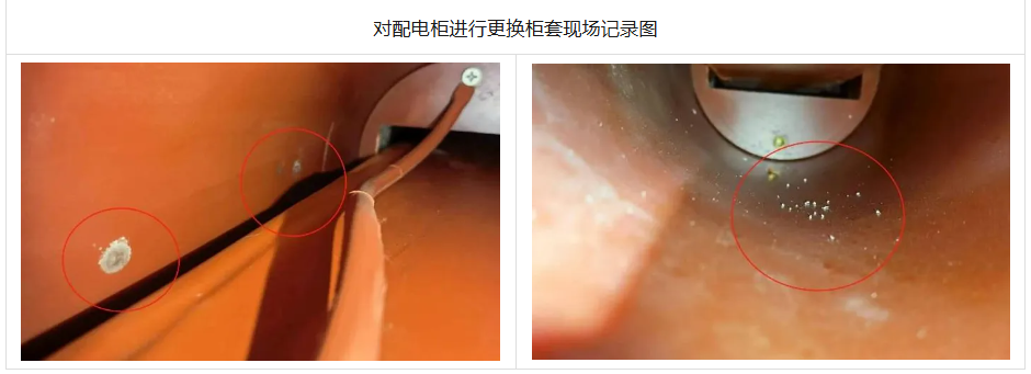第二次處理后:對該柜進行停電開柜復(fù)查,再次發(fā)現(xiàn)穿柜套管內(nèi)有白色沉積物,對該穿柜套管采取更換新措施。對更換后的柜體再次進行檢測,無局部放電現(xiàn)象,局放故障消除。