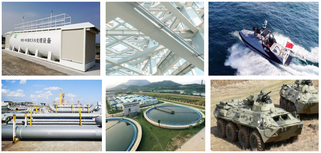 應(yīng)用于建筑、化工、冶金、電力、海洋、船舶、汽車制造、影視道具等眾多領(lǐng)域的抗爆防腐防水防護(hù)。
